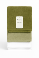 3-Piece Kitchen Towel Set – Olive Green, Sage Green & Classic White